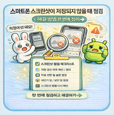 스마트폰 스크린샷이 저장되지 않을 때 바로 고장이나 초기화를 떠올리기보다는 저장공간, 권한, 설정을 차분히 점검하는 것이 가장 현명한 해결 방법입니다.